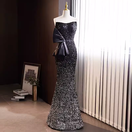 Luxury Mermaid Strapless Long Sequin Black Prom Dress B148