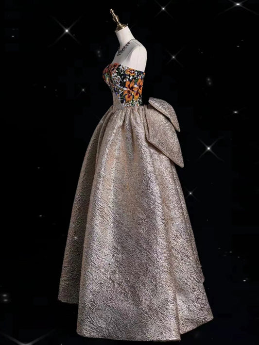 Pretty Ball Gown Strapless Floral Satin Long Prom Dress Evening Dresses With Bowknot CC3253