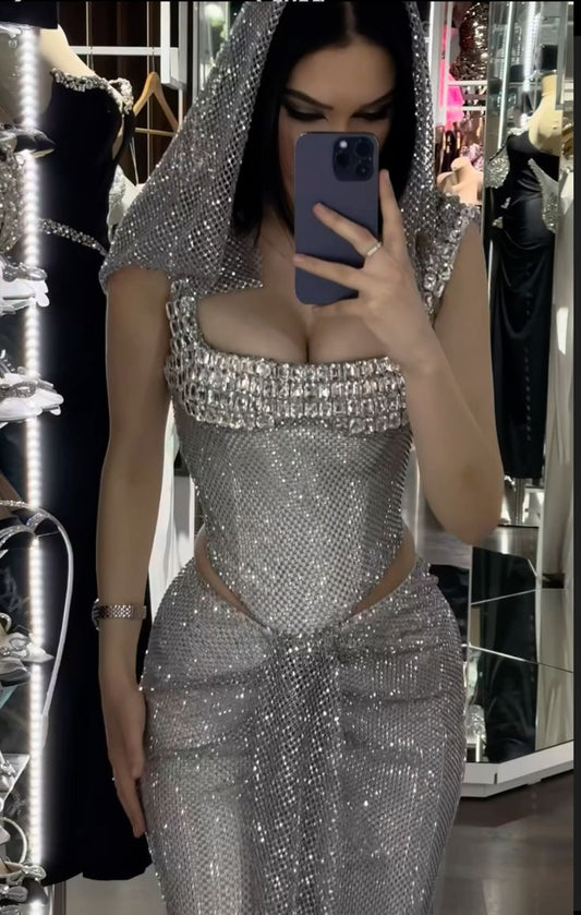 Pretty Mermaid Square Neckline Sequin Silver Long Prom Dresses Glitter Evening Dress C2566