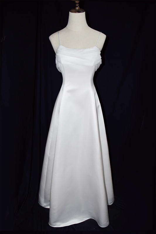Vintage Mermaid Straps Sleeveless White Long Prom Dresses C84