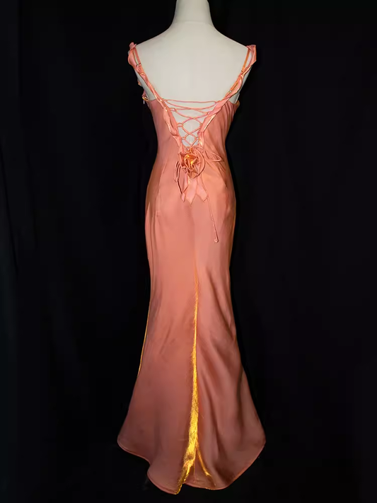 Vintage Mermaid Straps Sleeveless Pink Long Prom Dresses C83
