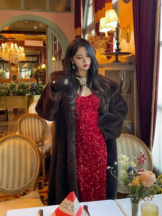 Vintage Mermaid Spaghetti Straps Red Sequin Birthday Dress Prom Dresses C3612