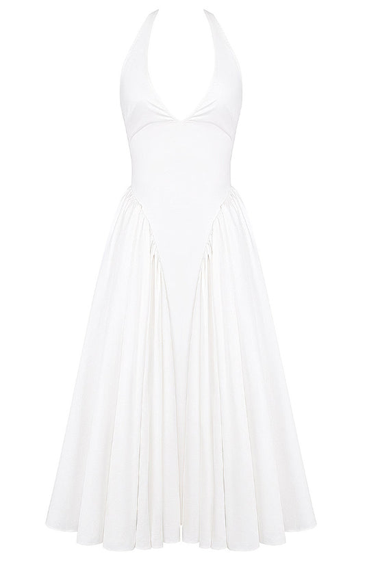 Vintage A line Halter White Satin Evening Dress Ankle Length Prom Dresses BD2502