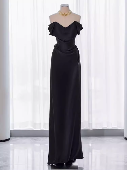 Modest Mermaid Off The Shoulder Black Satin Long Prom Dresses C218