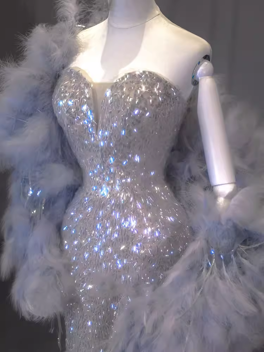 Sexy A Line Off The Shoulder Sequin Long Prom Dresses Birthday Outfits With Feather C229