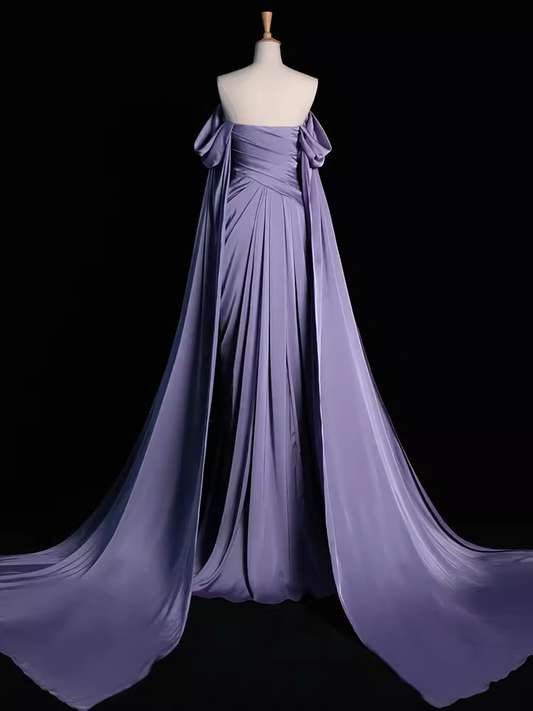 Sexy Sheath Off The Shoulder Light Purple Long Prom Dresses Satin Birthday Outfits C234