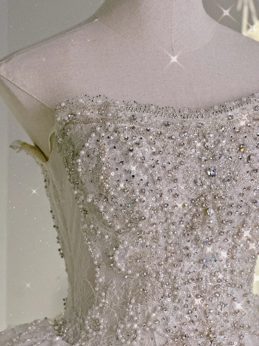Timeless Ball Gown Strapless Tulle Lace Beaded Long Wedding Dresses C3984