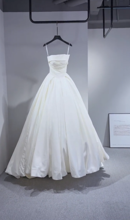 Elegant Ball Gown Strapless Satin Pleated Long Wedding Dresses C3977