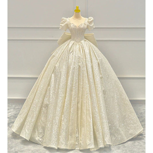 Timeless Ball Gown Sweetheart Long Puffy Sleeves Sequin Wedding Dresses With Bowknot C1800
