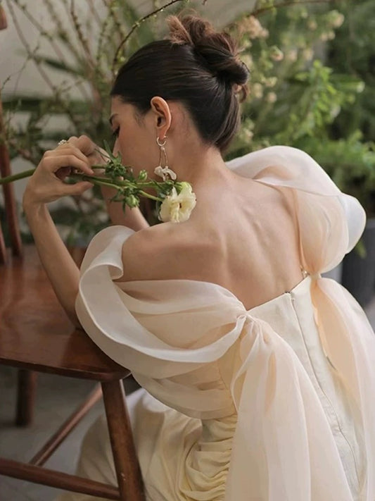 Classy A line Off The Shoulder Short Sleeves Floor Length Satin Wedding Dresses C1637