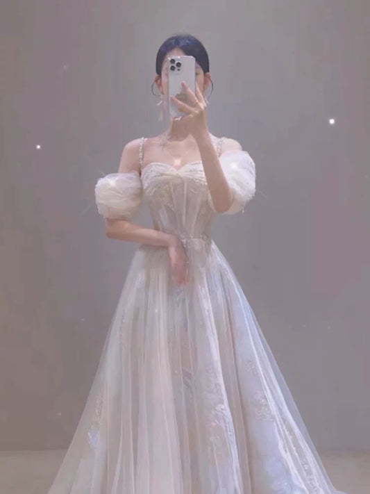 Timeless A Line Off The Shoulder Straps Long Lace White Wedding Dresses C1660
