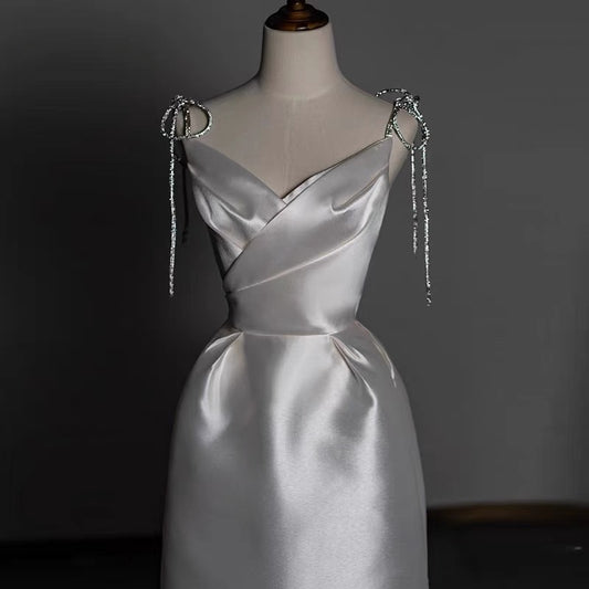 Timeless Sheath Straps Long Satin White Wedding Dresses C1663