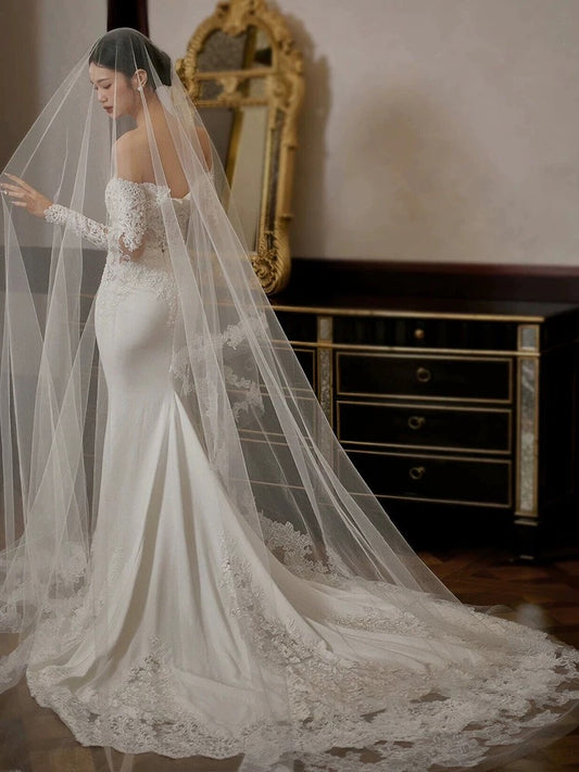 Unique Mermaid Off The Shoulder Lace Long Sleeves White Wedding Dresses C1668