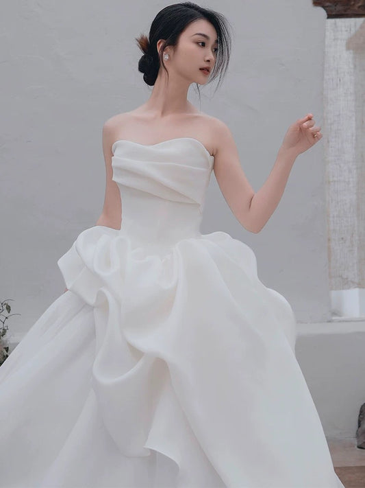 Unique Ball Gown Sweetheart Long Organza White Wedding Dresses C1673