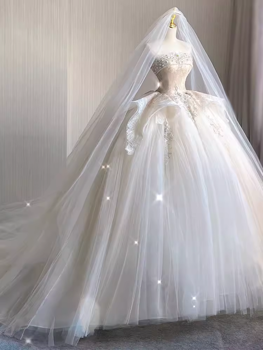 Vintage Ball Gown Strapless Tulle White Wedding Dresses C168