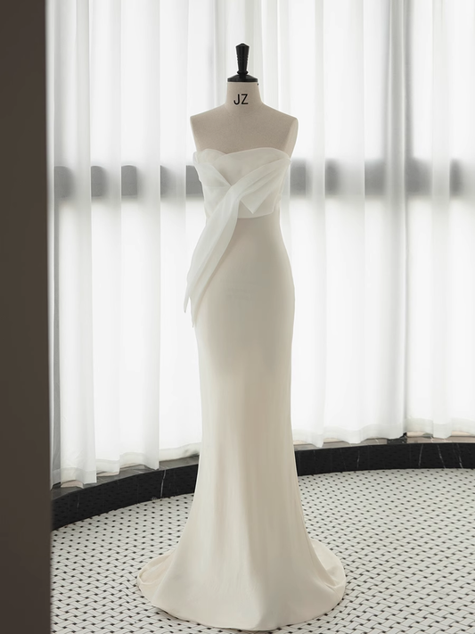 Simple Mermaid Sweetheart White Satin Wedding Dresses B017