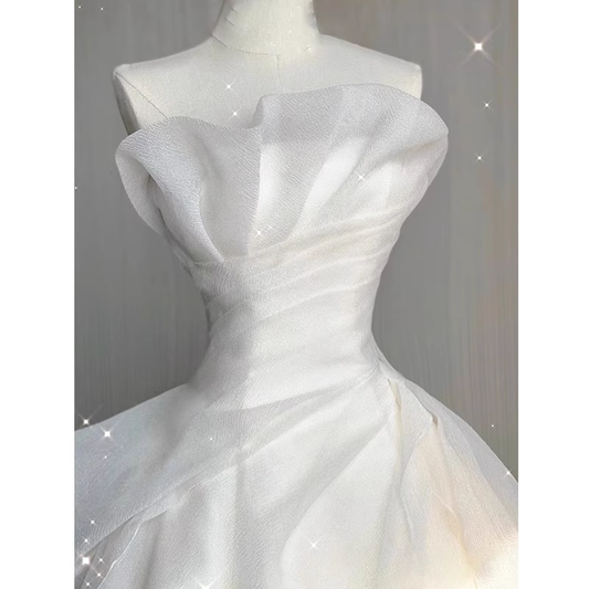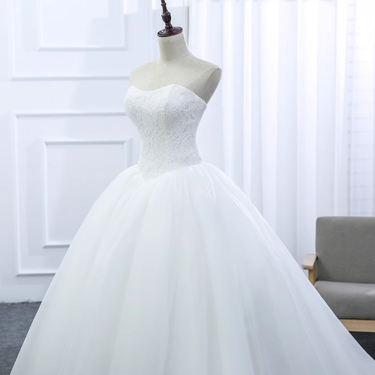 Vintage Ball Gown Strapless White Tulle Long Wedding Dresses B089