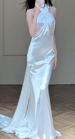 Chic Mermaid Halter Satin Long Wedding Dresses C4332