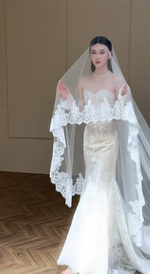 Timeless Mermaid Sweetheart Tulle Lace With Gloves Veil Long Wedding Dresses C4340
