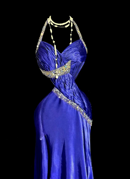 Robe de bal longue rétro trapèze en satin à col en V et perles, sans manches, référence C6600