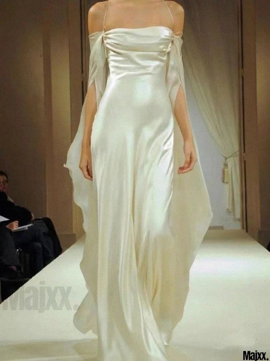 Robe de soirée longue en ivoire à manches longues et épaules dénudées C2888