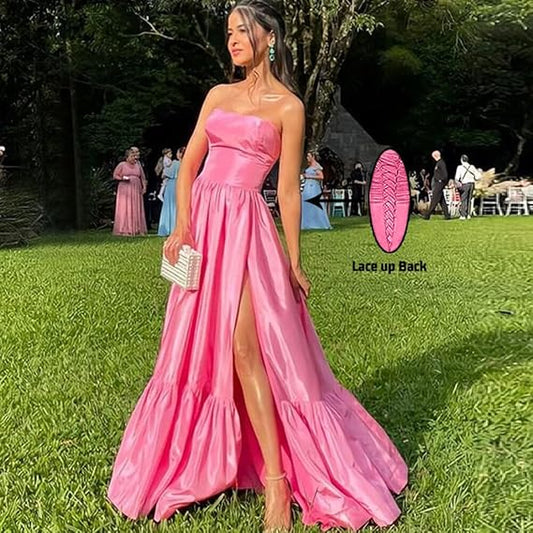 Robe de bal élégante sans bretelles rose longueur au sol en satin fendue Robe de bal C2533