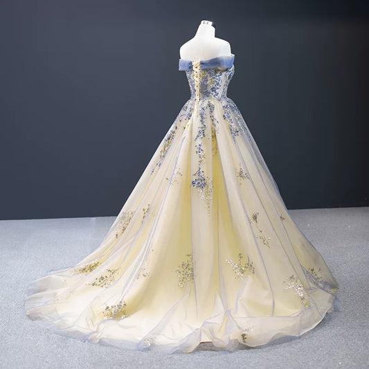 Robe de bal modeste à épaules dénudées, longue, bleue, Sweet 15, robes de bal C1952
