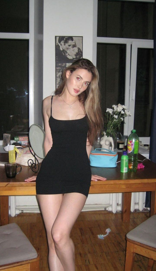 Charmante robe sirène courte en satin noir à bretelles spaghetti pour fête d'anniversaire 20 ans C5027