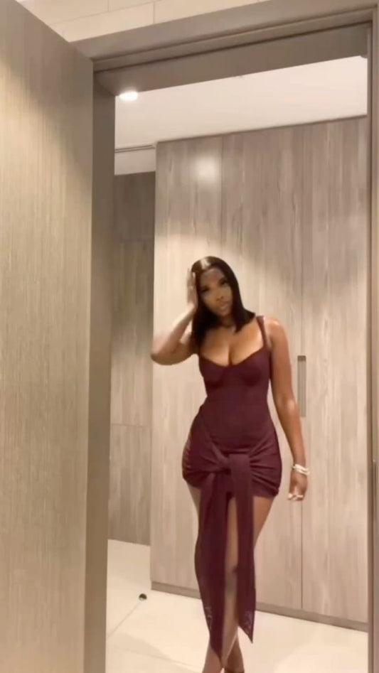 Charmante robe de bal sirène bustier en dentelle, longueur thé, robe de soirée C5933