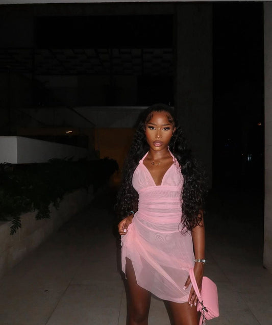 Robe de soirée courte en mousseline de soie, coupe trapèze, col licou, chic, tenue pour 19e anniversaire, C5867
