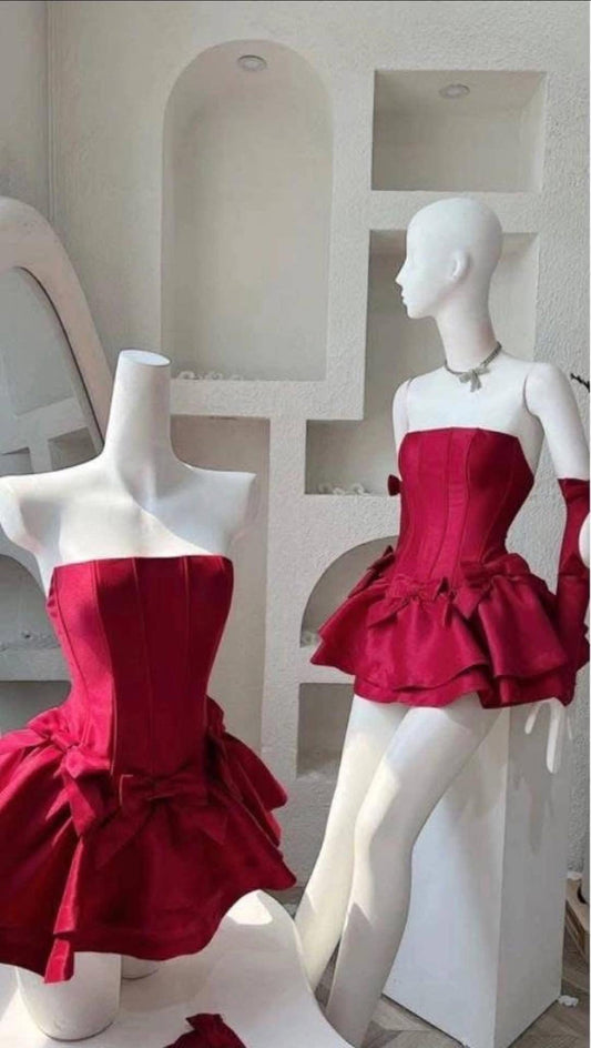 Robe de soirée courte en satin à épaules dénudées et coupe trapèze chic, tenue pour 20e anniversaire, C4979
