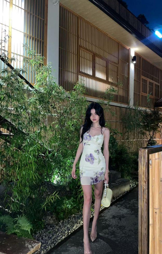 Robe sirène sexy à bretelles spaghetti en mousseline imprimée, courte, tenue de soirée pour 22e anniversaire, C5787