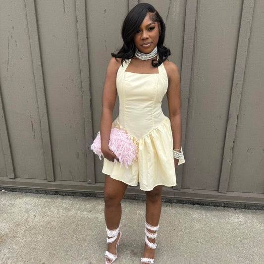 Robe de soirée courte en satin, coupe trapèze, dos nu, tenue d'anniversaire pour 16 ans, C5055