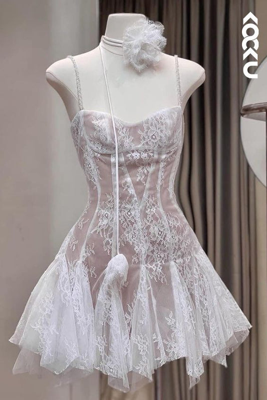 Robe d'anniversaire courte ligne A Simple, en dentelle, blanche, robes de soirée, C496