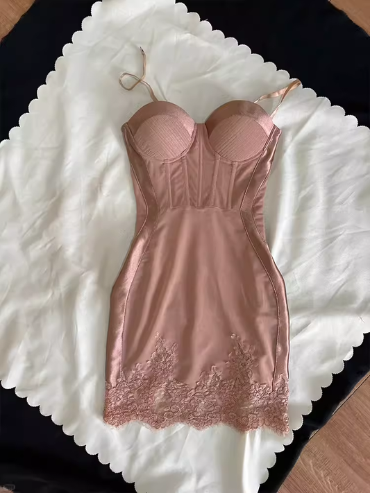 Robe de soirée courte rose à bretelles fourreau simples, tenue d'anniversaire, C535