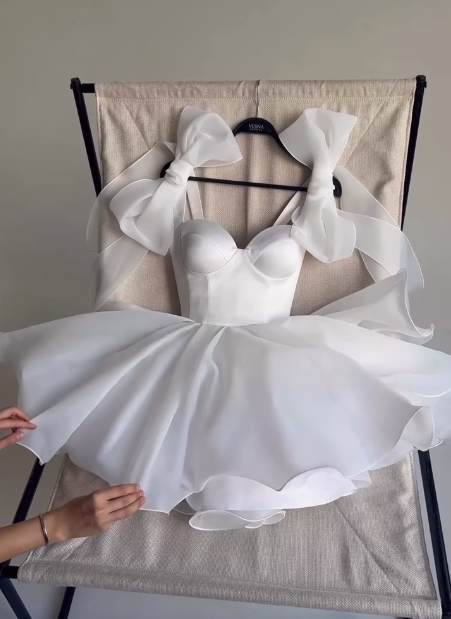 Robe de soirée courte en satin, simple, blanche, coupe trapèze, sans bretelles, tenue pour 20e anniversaire, C4903