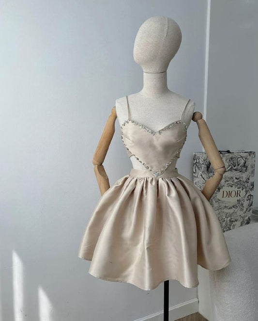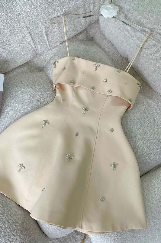 Mini robe de soirée en Satin perlée, bretelles Spaghetti simples, sans manches, ligne a, C887