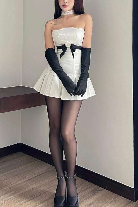 Robe de cocktail courte sans bretelles en coupe A avec nœud Robe de soirée C1495