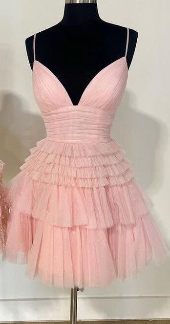 Robe de soirée en tulle scintillant, à bretelles, col en v, avec jupe à volants à plusieurs niveaux et corsage froncé, tenues d'anniversaire C1331