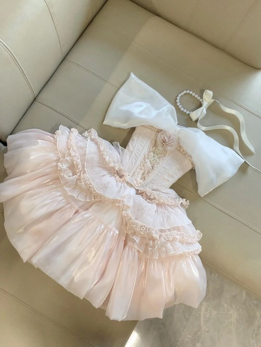 Robe de bal rose à épaules dénudées en satin et mousseline, courte, tenue de bal, anniversaire, C5831