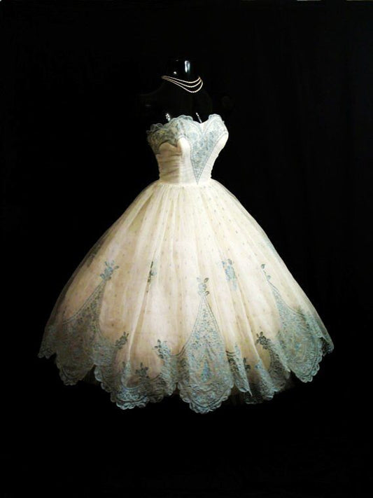 Robe de bal chic sans bretelles en tulle et dentelle, courte, tenue de soirée pour 17e anniversaire, C5693