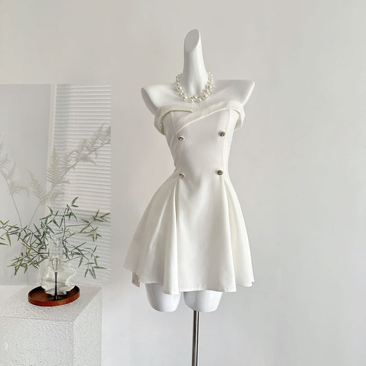 Robe de soirée courte en satin, coupe trapèze, sans bretelles, tenue unique pour 19e anniversaire, C5144
