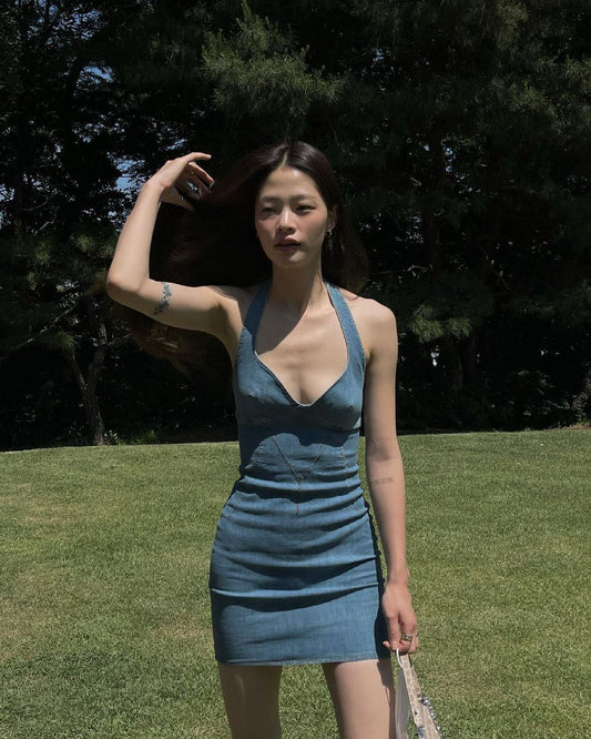 Robe de soirée courte en satin à col licou et sirène, tenue unique pour 20e anniversaire, C5037