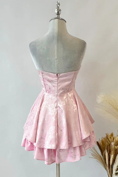 Robe de soirée courte plissée en satin rose, style vintage, coupe trapèze, sans bretelles, tenue pour 17e anniversaire, C4663
