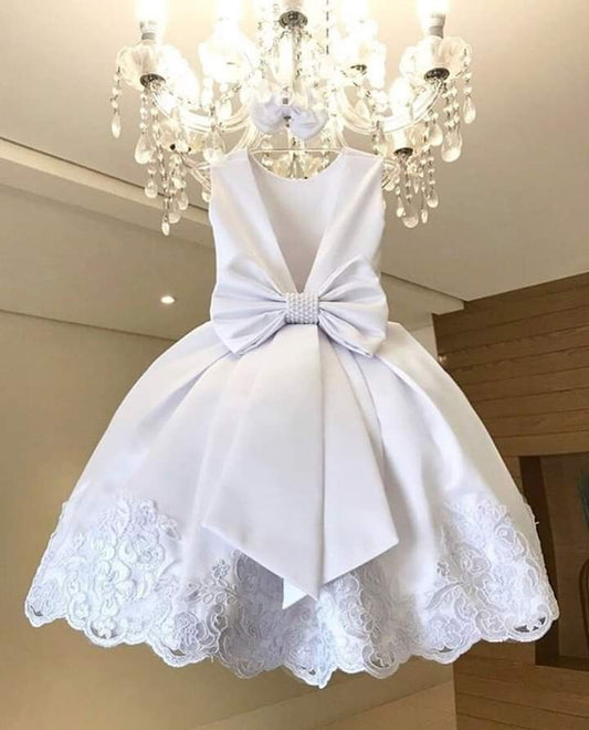Robe de bal blanche en satin et dentelle pour fille C6053