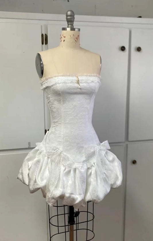 Robe de cocktail blanche vintage des années 50, robe de soirée avec nœud, robe de soirée C1450