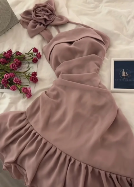 Robe de soirée courte bustier en mousseline de soie avec fleurs, élégante, coupe trapèze, tenue pour 18e anniversaire, C4413