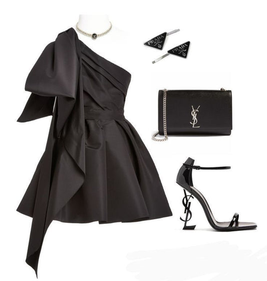 Robe de cocktail courte noire à une épaule et ligne A mignonne C1921