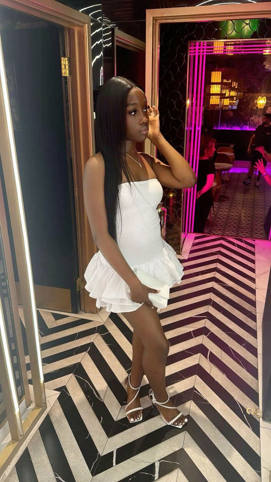 Robe courte moulante en satin, coupe trapèze, sans bretelles, pour un 19e anniversaire, C5797