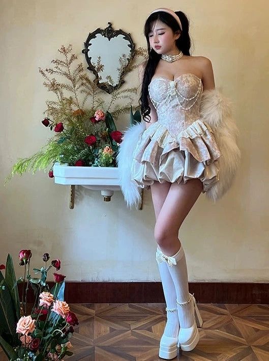 Robe de bal en dentelle mignonne, robes de soirée, robe d'anniversaire courte, C607